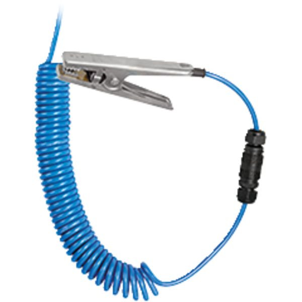 Erdungszange mit Spiralkabel;Temperaturbereich: -40°C ... +70°C; 10 m öl- und benzinbeständiges Spiralkabel mit Erdungszange aus Edelstahl und Schnellstecker; Installation in Zone 1, IIC,T6; Zone 21, IIIC, 135 °C