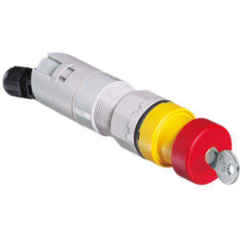 Pilzsperrtaster mit Schlüsselschaltvorsatz NOT-AUS MS1, für Schalttafeleinbau, Ex e, Silber-Nickel, Anzahl der Öffner: 1, Anzahl der Schließer: 1, Silikonfrei: Nein, Zone 1, 2, 21, 22