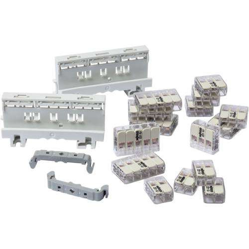 Installations-Set WAGO 221: 2x Befestigungsadapter 221- 501 für 4mm², 2x Befestigungsfuß 209-120 6,4 mm, 4x Verbindungskl. 221- 482 für 2x 0,2 -4 mm², 6x Verbindungskl. 221-483 für 3x 0,2- 4 mm², 5x Verbindungskl. 221-485 für 5x 0,2-4 mm²