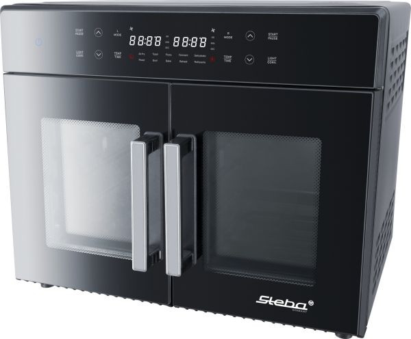 Airfry-Ofen mit 3 individuellen Kochzonen: - großer Garraum mit 24 l Volumen oder - 2 kleine Garräume mit je 12 l Volumen zum gleichzeitigen Zubereiten mit unterschiedlichenProgrammen; Frittieren, Backen und Grillen mit einem Gerät - schnellegleichmäßige Hitzeverteilung durch Heißluft-Technologie, Umluft, zuschaltbar, Ober- und Unterhitze, 3 Einschubebenen, 3 emaillierte Backbleche, 3 Airfry-Gitter, 1 Krümelblech, 2 Doppel-Glastüren im „French-Door“-Style, 10 Automatikprogramme z.B. Airfry, Fermentieren oderDehydrieren, Sync-Finish Funktion für gleichzeitiges Fertigstellen von Speisenmit unterschiedlicher Garzeit, Innenraumbeleuchtung