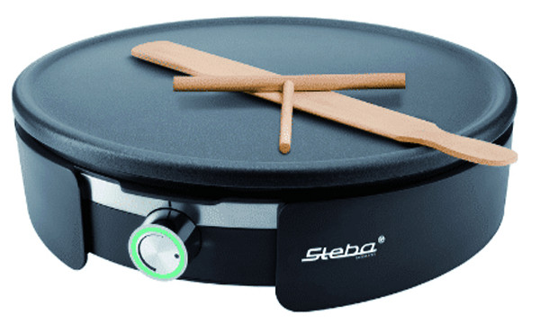 XXL-Crêpes-Maker für original französische Crêpes mit 35 cm Ø, abnehmbare antihaftbeschichtete Alu-Druckgussplatte, stufenlose Temperaturregelung, Betriebskontrollleuchte, Temperaturkontrollleuchte, inkl. Teigrechen und Crêpeswender, Kabelaufwicklung