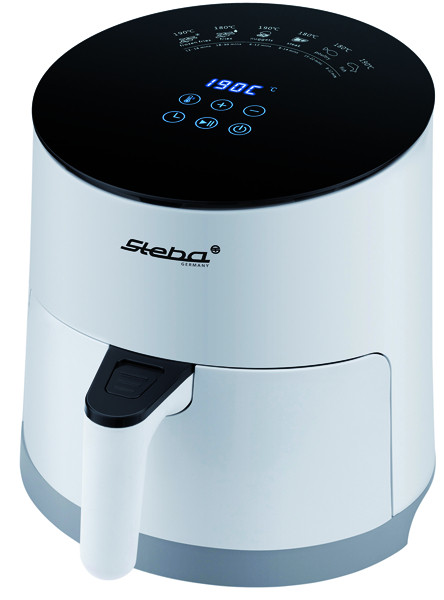Heißluft-Technologie, gesunde Zubereitung mit bis zu 80 % weniger Fett, 3,5 l Volumen im antihaftbeschichteten Frittierkorb, Touch Control mit LCD-Display, Temperaturregelung von 80 - 190° C, 60 Min. Timer, Sicherheitsmikroschalter ermöglicht die Kontrolle des Garguts während des Frittierens ohne Unterbrechung des Programms