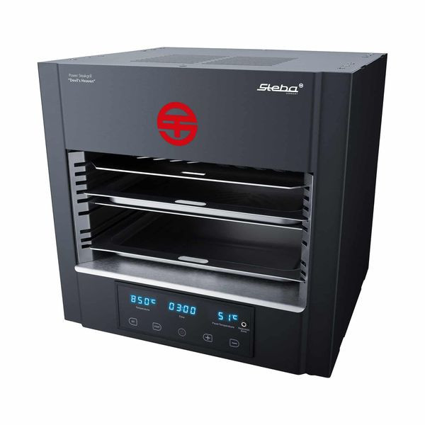 PS E2600 XL "DEVIL'S HEAVEN" POWER STEAKGRILLDer Power-Steakgrill PS E2600 XL „DEVIL’S HEAVEN” ist ein absolutes Highlight für jeden Grill- und Fleischliebhaber. Spontan einsatzbereit und ohne lange Aufheizzeit gelingen im großen Garraum bei teuflisch heißen 850°C himmlisch zarte Steaks, Fisch und anderes Grillgut. Durch die intensive Hitze karamellisiert der Zucker auf der Oberfläche sofort und das Grillgut bekommt in Minutenschnelle eine krosse Kruste mit Röstaromen, während das Innere noch saftig und zart bleibt.