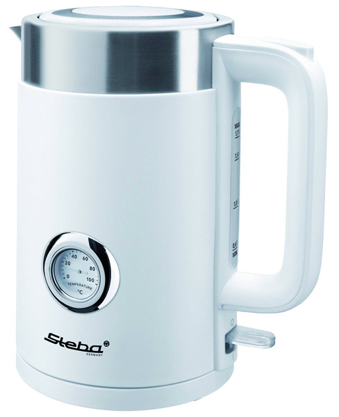 kabellos, 360°-Sockel, Temperaturanzeige bis 100 °C, entnehmbarer Partikelfilter, Deckelöffnung per Knopfdruck, Wasserstandsanzeige, Ein-/Ausschalter, Betriebskontrollleuchte, Trockengeh-/Überhitzungsschutz, doppelwandiges Gehäuse (innen Edelstahl, außen Kunststoff) mit Thermofunktion