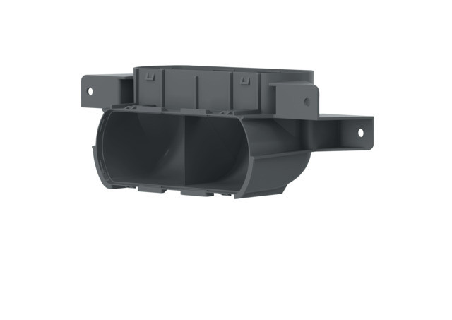 Beschreibung • Der 90 Grad-Hochbogen kann mit den separat erhältlichen Adaptern für LVE – onfloor und LVS – infloor sowie zur Kombination der beiden Systeme eingesetzt werden. Die Adapter lassen sich um 180 Grad drehen. • Geringe Druckverluste und minimierte Geräusche dank des optimierten Querschnitts. • Der Hochbogen ist leicht zu reinigen. • Die Innenrippe versteift das Bauteil und trennt die Luftvolumenströme. • Optimal für den Fertighausbereich geeignet, da das geringe Maß von maximal 86 mm den Einbau im Werk erlaubt. Der Hochbogen kann problemlos in 100-mm-Wänden (Holzständerwerk) verbaut werden. • Für den sicheren Stand an der Wand sorgen die rückseitigen Rippen. • Der Hochbogen lässt sich leicht an die Lage des LVE-Rohrs anpassen.