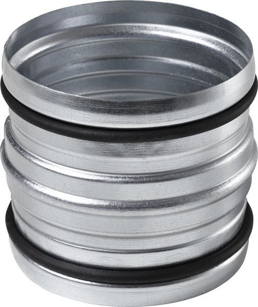 Beschreibung • Der Bundkragen-Steckverbinder aus verzinktem Stahlblech ist beidseitig mit einer EPDM-Lippendichtung ausgestattet. Er kann im Innen- und Außenbereich eingesetzt werden.