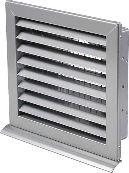 Beschreibung • Das Lüftungsgitter mit Rohr-Anschlussstutzen aus Stahlblech wird für die Außen- und Fortluft-Führung genutzt. Das Gitter mit festen Rasterlamellen wird in die Außenwand eingebaut.