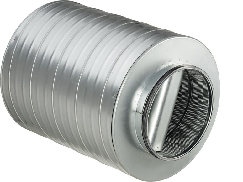 Beschreibung • Der Kulissen-Schalldämpfer besteht aus einem Außenrohr, einem perforierten Innenrohr, einer Kulisse und zwei Anschluss-Enden mit Doppellippen-Dichtung. Er reduziert die Schallwerte von Integralsystemen und Luft-Wasser-Wärmepumpen am Außenwand-Gitter. • Der Zwischenraum ist mit schallabsorbierendem Dämmmaterial gefüllt. Ein Glasvlies zwischen Innenrohr und Isolierung verhindert den Kontakt des Dämmmaterials mit dem Luftstrom.