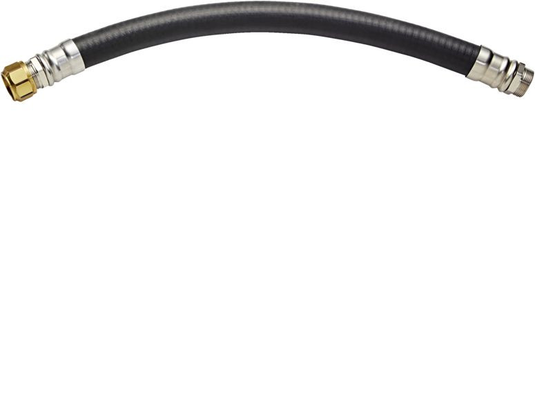 Beschreibung • Der ungedämmte Druckschlauch für die Sole-Vorlaufleitung und die Sole-Rücklaufleitung ist auf einer Seite mit einem Schraubanschluss ausgestattet, die andere Seite bietet eine Klemmverschraubung.