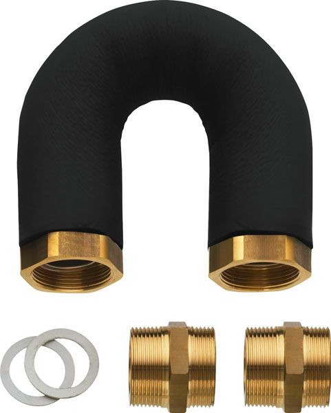 Anschluss Überwurfverschraubung:G 1 1/2 Beschreibung • Mit dem Verbindungs-Wellrohr werden der untere und der obere Wärmeübertrager zusammengeschaltet. • Zum Lieferumfang gehören das Einschraubteil und eine Überwurfmutter.