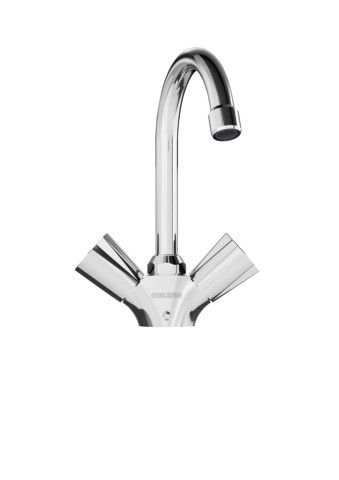 Beschreibung • Drucklose, offene Temperier-Armatur mit zwei Drehgriffen für die Einlochmontage auf Waschtischen. Ausgestattet mit Rohrschwenkauslauf, flexiblen Wasseranschluss-Schläuchen und Verschraubung. Messing-Gehäuse mit Chrom-Oberfläche.