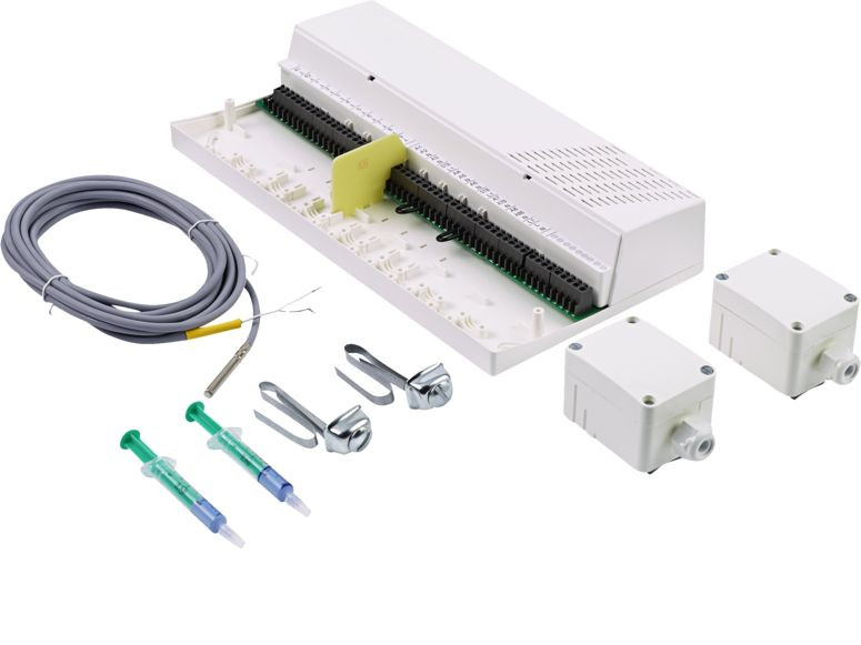 Beschreibung• Das Zusatzmodul wird mit einem Master-Regler OTE (Lieferumfang der Wärmepumpe) kombiniert, um die Regelfunktionen zu erweitern. • Folgende Anwendungen lassen sich mit dem Modul realisieren: Ansteuerung SmartGrid-Funktionen (SG Ready), Regelung eines zweiten und dritten Mischerkreises zum Heizen und Kühlen, Anforderung Schwimmbad-Heizung, Regelung eines weiteren Wassererwärmers, Ansteuerung einer weiteren Wärmepumpe in Kaskade, Ansteuerung eines Heizkessels. • Im Lieferumfang enthalten sind 2 Anlege- sowie 1 Tauchfühler NTC 5000. • Der Anschluss an den Regler erfolgt mit einem 2-Draht-BUS. • Soll-Wert Eingang 0-10 V nicht potenzialfrei. • Das Zusatzmodul wird in einem Gehäuse für die Aufputz-Montage geliefert.