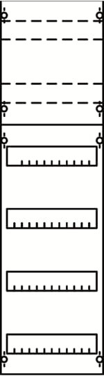Innenausbausystem, Verteilerfelder, montiert auf EDF-Profil, für Reiheneinbaugeräte und Reihenklemmen, Rasteinheit 6 RE = 900 mm, Feldbreite 1 = 250 mm, 72 Platzeinheiten, Reihenabstand: 150, Ausbau mit Hutprofilschiene 35 x 15 mm mit Lochung für Drahthalter, für Einbaugeräte nach DIN 43880, Abdeckungen aus Kunststoff, 90 Grad Druck-Drehverschluss, RAL 7035, Ausführung der Abdeckung: mit Ausschnitt, einsetzbar ab einer Schranktiefe von 120 mm, Verteilerfelder oder Feldkombinationen müssen die gleichen Rastereinheiten haben wie die Schränke, in die sie eingebaut werden. Bei Stand- und Reihenschaltschränken müssen zwei Felder oder Feldkombinationen übereinander eingebaut werden. Die EDF-Profilschienen sind im Lieferumfang enthalten.