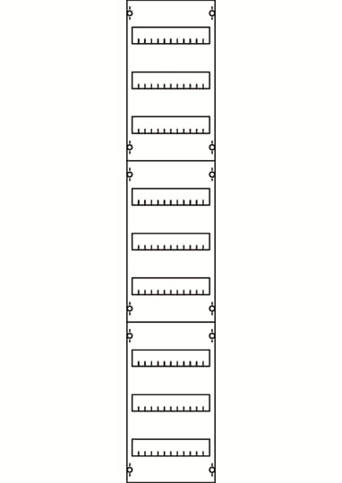 Innenausbausystem, Verteilerfelder, montiert auf EDF-Profil, für DIN Reiheneinbaugeräte, Rasteinheit 9 RE = 1350 mm, Feldbreite 1 = 250 mm, 108 Platzeinheiten, Reihenabstand: 125, Ausbau mit Hutprofilschiene 35 x 15 mm mit Lochung für Drahthalter, für Einbaugeräte nach DIN 43880, Abdeckungen aus Kunststoff, 90 Grad Druck-Drehverschluss, RAL 7035, Ausführung der Abdeckung: mit Ausschnitt, einsetzbar ab einer Schranktiefe von 120 mm, Verteilerfelder oder Feldkombinationen müssen die gleichen Rastereinheiten haben wie die Schränke, in die sie eingebaut werden. Bei Stand- und Reihenschaltschränken müssen zwei Felder oder Feldkombinationen übereinander eingebaut werden. Die EDF-Profilschienen sind im Lieferumfang enthalten.