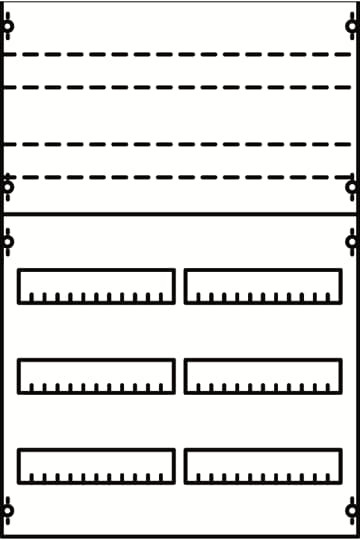 Innenausbausystem, Verteilerfelder, montiert auf EDF-Profil, für Reiheneinbaugeräte und Reihenklemmen, Rasteinheit 5 RE = 750 mm, Feldbreite 2 = 500 mm, 120 Platzeinheiten, Reihenabstand: 125, Ausbau mit Hutprofilschiene 35 x 15 mm mit Lochung für Drahthalter, für Einbaugeräte nach DIN 43880, Abdeckungen aus Kunststoff, 90 Grad Druck-Drehverschluss, RAL 7035, Ausführung der Abdeckung: mit Ausschnitt, einsetzbar ab einer Schranktiefe von 120 mm, Verteilerfelder oder Feldkombinationen müssen die gleichen Rastereinheiten haben wie die Schränke, in die sie eingebaut werden. Bei Stand- und Reihenschaltschränken müssen zwei Felder oder Feldkombinationen übereinander eingebaut werden. Die EDF-Profilschienen sind im Lieferumfang enthalten.