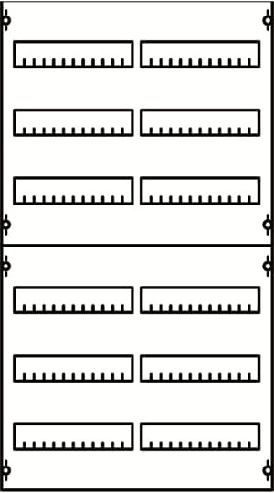 Innenausbausystem, Verteilerfelder, montiert auf EDF-Profil, für DIN Reiheneinbaugeräte, Rasteinheit 6 RE = 900 mm, Feldbreite 2 = 500 mm, 144 Platzeinheiten, Reihenabstand: 125, Ausbau mit Hutprofilschiene 35 x 15 mm mit Lochung für Drahthalter, für Einbaugeräte nach DIN 43880, Abdeckungen aus Kunststoff, 90 Grad Druck-Drehverschluss, RAL 7035, Ausführung der Abdeckung: mit Ausschnitt, einsetzbar ab einer Schranktiefe von 120 mm, Verteilerfelder oder Feldkombinationen müssen die gleichen Rastereinheiten haben wie die Schränke, in die sie eingebaut werden. Bei Stand- und Reihenschaltschränken müssen zwei Felder oder Feldkombinationen übereinander eingebaut werden. Die EDF-Profilschienen sind im Lieferumfang enthalten.