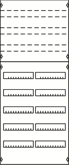 Innenausbausystem, Verteilerfelder, montiert auf EDF-Profil, für Reiheneinbaugeräte und Reihenklemmen, Rasteinheit 8 RE = 1200 mm, Feldbreite 2 = 500 mm, 192 Platzeinheiten, Reihenabstand: 125, Ausbau mit Hutprofilschiene 35 x 15 mm mit Lochung für Drahthalter, für Einbaugeräte nach DIN 43880, Abdeckungen aus Kunststoff, 90 Grad Druck-Drehverschluss, RAL 7035, Ausführung der Abdeckung: mit Ausschnitt, einsetzbar ab einer Schranktiefe von 120 mm, Verteilerfelder oder Feldkombinationen müssen die gleichen Rastereinheiten haben wie die Schränke, in die sie eingebaut werden. Bei Stand- und Reihenschaltschränken müssen zwei Felder oder Feldkombinationen übereinander eingebaut werden. Die EDF-Profilschienen sind im Lieferumfang enthalten.