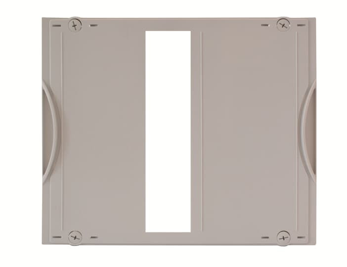 Abdeckung, Ausführung der Abdeckung mit Ausschnitt, Abdeckungen aus Kunststoff, 90 Grad Druck-Drehverschluss, RAL 7035, Verpackungseinheit 1 Stück