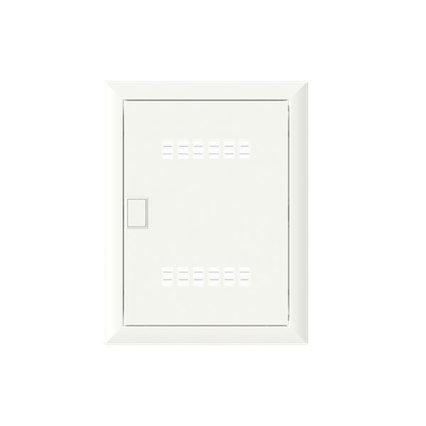 Blendrahmen und Tür >media< mit Lüftungsöffnungen, passend zu Stromkreisverteiler UK62…, Stahlblech pulverbeschichtet, Farbe: alpinweiß, RAL 9016, der Tip-in-Türverschluss besticht durch sein modernes Design und die einfache Bedienbarkeit, für mehr Sicherheit ist ein Sicherheitsschloss als Zubehör erhältlich, leichtes Abnehmen von Blendrahmen und Tür mit Putzausgleichsmöglichkeit