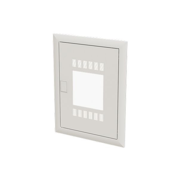 Blendrahmen und >wifi< Tür mit Lüftungsöffnungen und Kunststoffeinsatz für verbessertes wifi Signal, passend zu Stromkreisverteiler UK62…, Stahlblech pulverbeschichtet, Farbe: alpinweiß, RAL 9016, der Tip-in-Türverschluss besticht durch sein modernes Design und die einfache Bedienbarkeit, für mehr Sicherheit ist ein Sicherheitsschloss als Zubehör erhältlich, leichtes Abnehmen von Blendrahmen und Tür mit Putzausgleichsmöglichkeit