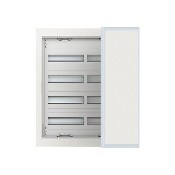 | Kurzbeschreibung | Kleinverteiler Unterputz, mit Design-Dekotür, 2-feldbreit, 4-reihig |