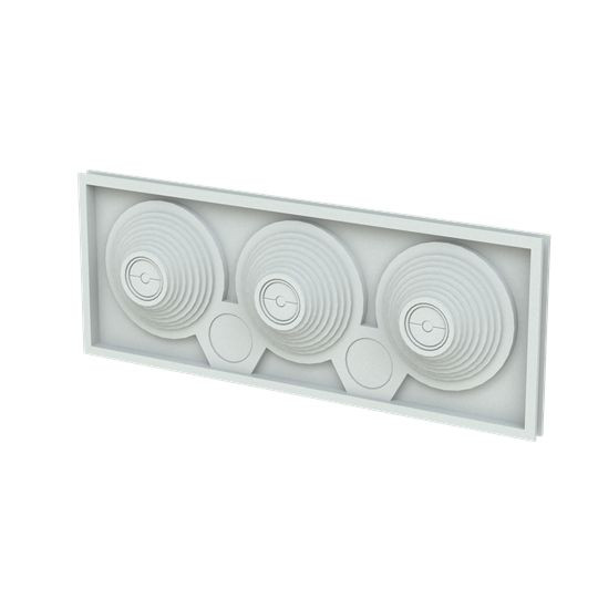 ComfortLine Einspeiseflansch passend für Kabeleinspeisegehäuse CZE220 und CZE230. Von vorne einsteckbar mit drei Einführungsstellen für Leitungen, ermöglicht das Einlegen von Hauptleitungen bis 70 mm.