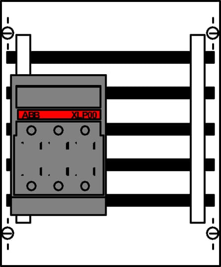 Innenausbausystem, Kombi-Sets, montiert auf EDF-Profil, für Sammelschienensystem mit Betriebsmittel, Rasteinheit 2 RE = 300 mm, Feldbreite 1 = 250 mm, 24 Platzeinheiten, bestückt mit 1 NH-Sicherungslasttrennschalter NH00, Betriebsmittel Fabrikat: ABB, ZH414, mit Sammelschienensystem 3-polig, Ausrichtung Sammelschienen: horizontal, mit Sammelschienenhalter ZB5, Sammelschienenmittenabstand: 40 mm, mit 3 Cu-Schienen, Bemessungsstrom In max. 360 A, Abdeckungen aus Kunststoff, 90 Grad Druck-Drehverschluss, RAL 7035, einsetzbar ab einer Schranktiefe von 200 mm, Kombi-Sets werden oben oder unten am Verteilerfeld eingesteckt und auf der anderen Seite am Schrank befestigt. Die EDF-Profilschienen und Feldverbinder sind im Lieferumfang enthalten.