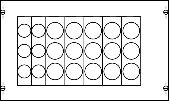 Innenausbausystem, Kombi-Sets, montiert auf EDF-Profil, für Sammelschienensystem mit Betriebsmittel, Rasteinheit 2 RE = 300 mm, Feldbreite 2 = 500 mm, 48 Platzeinheiten, bestückt mit 7 Reitersicherungssockel E27, E33, Betriebsmittel Fabrikat: ABB, mit Sammelschienensystem 3-polig, Ausrichtung Sammelschienen: horizontal, mit Sammelschienenhalter ZB5, Sammelschienenmittenabstand: 60 mm, mit 3 Cu-Schienen, Bemessungsstrom In max. 250 A, Abdeckungen aus Kunststoff, 90 Grad Druck-Drehverschluss, RAL 7035, Ausführung der Abdeckung: mit Ausschnitt, einsetzbar ab einer Schranktiefe von 200 mm, Kombi-Sets werden oben oder unten am Verteilerfeld eingesteckt und auf der anderen Seite am Schrank befestigt. Die EDF-Profilschienen und Feldverbinder sind im Lieferumfang enthalten.