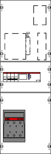 EEG-Feld, Bausatz unmontiert, Bemessungsstrom In 110 A, Abmessungen in mm (H x B x T): 750 x 250 x 160, Netzsystem TN-S, auch für TT-System geeignet, 5-polig, Abdeckungen aus Kunststoff, plombierbarer Schnellverschluss