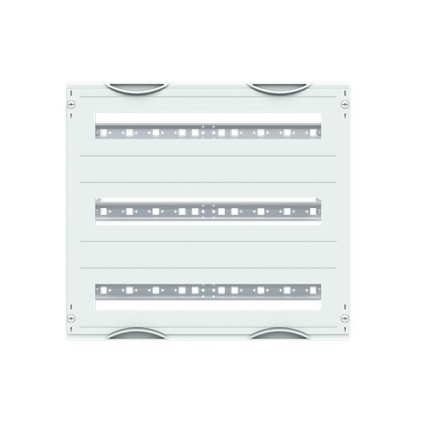 Innenausbau Modul, CombiLine, Bausatz unmontiert, für SMISSLINE TP Geräteeinbau horizontal, Rasteinheit 3 RE = 450 mm, Feldbreite 2 = 500 mm, 72 Platzeinheiten, Reihenabstand: 150, Ausbau mit Hutprofilschiene 35 x 15 mm mit Lochung für Drahthalter, für Stecksockellänge 3 x 22 Platzeinheiten, Abdeckungen aus Kunststoff, 90 Grad Druck-Drehverschluss, RAL 7035, Ausführung der Abdeckung: mit Ausschnitt, einsetzbar ab einer Schranktiefe von 215 mm, EDF oder WR Montagegerüst muss separat bestellt werden