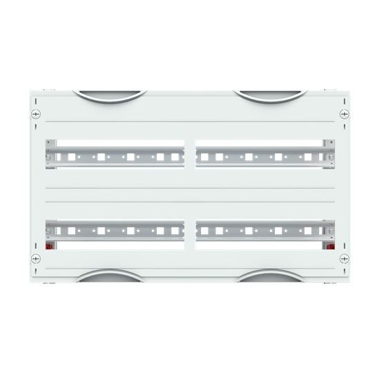 Innenausbau Modul, CombiLine, Bausatz unmontiert, für DIN Reiheneinbaugeräte, Rasteinheit 2 RE = 300 mm, Feldbreite 2 = 500 mm, 48 Platzeinheiten, Reihenabstand: 125, Ausbau mit Hutprofilschiene 35 x 15 mm mit Lochung für Drahthalter, für Einbaugeräte nach DIN 43880, Abdeckungen aus Kunststoff, 90 Grad Druck-Drehverschluss, RAL 7035, Ausführung der Abdeckung: mit Ausschnitt, einsetzbar ab einer Schranktiefe von 120 mm, EDF oder WR Montagegerüst muss separat bestellt werden