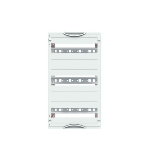 Innenausbau Modul, CombiLine, Bausatz unmontiert, für DIN Reiheneinbaugeräte, Rasteinheit 3 RE = 450 mm, Feldbreite 1 = 250 mm, 36 Platzeinheiten, Reihenabstand: 150, Ausbau mit Hutprofilschiene 35 x 15 mm mit Lochung für Drahthalter, für Einbaugeräte nach DIN 43880, Abdeckungen aus Kunststoff, 90 Grad Druck-Drehverschluss, RAL 7035, Ausführung der Abdeckung: mit Ausschnitt, einsetzbar ab einer Schranktiefe von 120 mm, EDF oder WR Montagegerüst muss separat bestellt werden