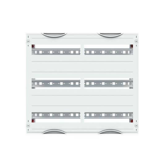 Innenausbau Modul, CombiLine, Bausatz unmontiert, für DIN Reiheneinbaugeräte, Rasteinheit 3 RE = 450 mm, Feldbreite 2 = 500 mm, 72 Platzeinheiten, Reihenabstand: 150, Ausbau mit Hutprofilschiene 35 x 15 mm mit Lochung für Drahthalter, für Einbaugeräte nach DIN 43880, Abdeckungen aus Kunststoff, 90 Grad Druck-Drehverschluss, RAL 7035, Ausführung der Abdeckung: mit Ausschnitt, einsetzbar ab einer Schranktiefe von 120 mm, EDF oder WR Montagegerüst muss separat bestellt werden