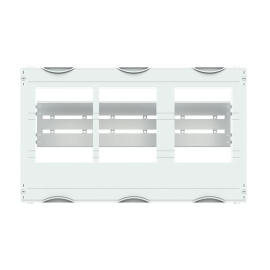 Innenausbau Modul, CombiLine, Bausatz unmontiert, für NH1-Sicherungslasttrennschalter, Rasteinheit 3 RE = 450 mm, Feldbreite 3 = 750 mm, 108 Platzeinheiten, unbestückt für den Einbau von 3 NH-Sicherungslasttrennschalter NH1, für Sammelschienensystem 3-polig, Bemessungsstrom In max. 440 A, Abdeckungen aus Kunststoff, 90 Grad Druck-Drehverschluss, RAL 7035, Ausführung der Abdeckung: mit Ausschnitt, einsetzbar ab einer Schranktiefe von 225 mm, WR Montagegerüst muss separat bestellt werden