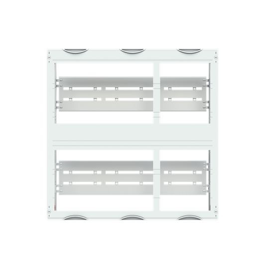 Innenausbau Modul, CombiLine, Bausatz unmontiert, für NH2-Sicherungslasttrennschalter, Rasteinheit 5 RE = 750 mm, Feldbreite 3 = 750 mm, 180 Platzeinheiten, unbestückt für den Einbau von 6 NH-Sicherungslasttrennschalter NH2, für Sammelschienensystem 3-polig, Bemessungsstrom In max. 630 A, Abdeckungen aus Kunststoff, 90 Grad Druck-Drehverschluss, RAL 7035, Ausführung der Abdeckung: mit Ausschnitt, einsetzbar ab einer Schranktiefe von 225 mm, WR Montagegerüst muss separat bestellt werden