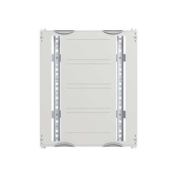 Innenausbau Modul, CombiLine, montiert im Schrank eingebaut, für SMISSLINE TP Geräteeinbau vertikal, Rasteinheit 4 RE = 600 mm, Feldbreite 2 = 500 mm, 96 Platzeinheiten, Ausbau mit Hutprofilschiene 35 x 15 mm mit Lochung für Drahthalter, für Stecksockellänge 2 x 30 Platzeinheiten, Abdeckungen aus Kunststoff, 90 Grad Druck-Drehverschluss, RAL 7035, Ausführung der Abdeckung: mit Ausschnitt, einsetzbar ab einer Schranktiefe von 275 mm, WR Montagegerüst muss separat bestellt werden