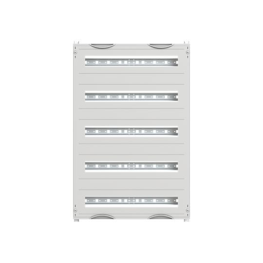 Innenausbau Modul, CombiLine, montiert im Schrank eingebaut, für SMISSLINE TP Geräteeinbau horizontal, Rasteinheit 5 RE = 750 mm, Feldbreite 2 = 500 mm, 120 Platzeinheiten, Reihenabstand: 150, Ausbau mit Hutprofilschiene 35 x 15 mm mit Lochung für Drahthalter, für Stecksockellänge 5 x 22 Platzeinheiten, Abdeckungen aus Kunststoff, 90 Grad Druck-Drehverschluss, RAL 7035, Ausführung der Abdeckung: mit Ausschnitt, einsetzbar ab einer Schranktiefe von 215 mm, EDF oder WR Montagegerüst muss separat bestellt werden