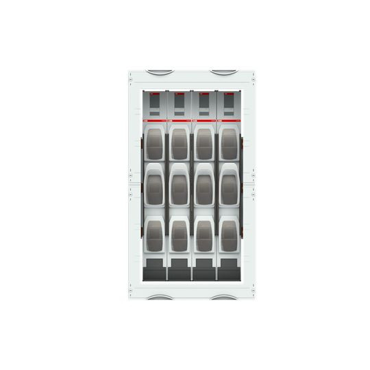 Innenausbau Modul, CombiLine, montiert im Schrank eingebaut, für Sammelschienensystem 185 mm NH-Lasttrennleisten, Rasteinheit 6 RE = 900 mm, Feldbreite 2 = 500 mm, 120 Platzeinheiten, nutzbare Breite von 400 mm, bestückt mit 4 NH-Sicherungslasttrennleisten NH1, Betriebsmittel Fabrikat: ABB, InLine II ZHBM + EFM, für Sammelschienensystem 3-polig, Ausrichtung Sammelschienen: horizontal, mit Sammelschienenhalter ZX522, Sammelschienenmittenabstand: 185 mm, für maximal 3 Cu-Schienen, (Sammelschienen müssen separat bestellt werden), Bemessungsstrom In max. 850 A, Abdeckungen aus Kunststoff, 90 Grad Druck-Drehverschluss, RAL 7035, Ausführung der Abdeckung: mit Ausschnitt, einsetzbar ab einer Schranktiefe von 275 mm, WR Montagegerüst muss separat bestellt werden