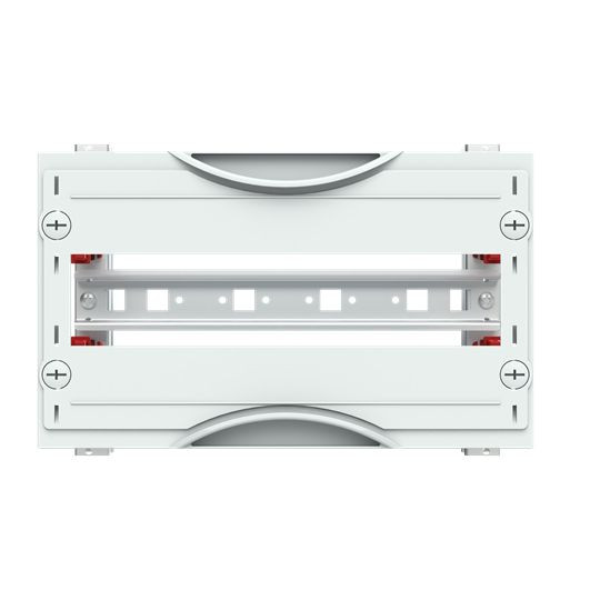 Innenausbau Modul, CombiLine, montiert im Schrank eingebaut, für DIN Reiheneinbaugeräte, Rasteinheit 1 RE = 150 mm, Feldbreite 1 = 250 mm, 12 Platzeinheiten, Reihenabstand: 125 / 150, Ausbau mit Hutprofilschiene 35 x 15 mm mit Lochung für Drahthalter, für Einbaugeräte nach DIN 43880, Abdeckungen aus Kunststoff, 90 Grad Druck-Drehverschluss, RAL 7035, Ausführung der Abdeckung: mit Ausschnitt, einsetzbar ab einer Schranktiefe von 120 mm, EDF oder WR Montagegerüst muss separat bestellt werden