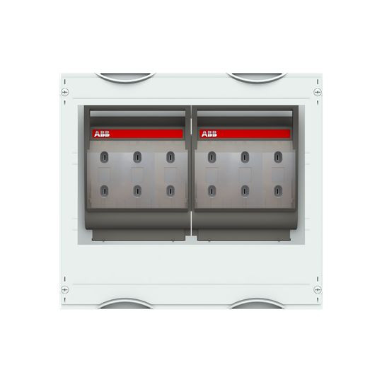 Innenausbau Modul, CombiLine, montiert im Schrank eingebaut, für NH2-Sicherungslasttrennschalter, Rasteinheit 3 RE = 450 mm, Feldbreite 2 = 500 mm, 72 Platzeinheiten, bestückt mit 2 NH-Sicherungslasttrennschalter NH2, Betriebsmittel Fabrikat: ABB, XLP, mit Sammelschienensystem 3-polig, Bemessungsstrom In max. 440 A, Abdeckungen aus Kunststoff, 90 Grad Druck-Drehverschluss, RAL 7035, Ausführung der Abdeckung: mit Ausschnitt, einsetzbar ab einer Schranktiefe von 215 mm, EDF oder WR Montagegerüst muss separat bestellt werden