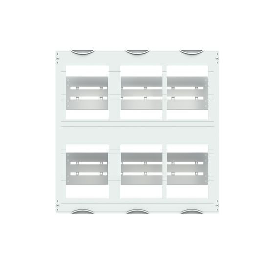 Innenausbau Modul, CombiLine, montiert im Schrank eingebaut, für NH1-Sicherungslasttrennschalter, Rasteinheit 5 RE = 750 mm, Feldbreite 3 = 750 mm, 180 Platzeinheiten, unbestückt für den Einbau von 6 NH-Sicherungslasttrennschalter NH1, für Sammelschienensystem 3-polig, Bemessungsstrom In max. 630 A, Abdeckungen aus Kunststoff, 90 Grad Druck-Drehverschluss, RAL 7035, Ausführung der Abdeckung: mit Ausschnitt, einsetzbar ab einer Schranktiefe von 225 mm, WR Montagegerüst muss separat bestellt werden