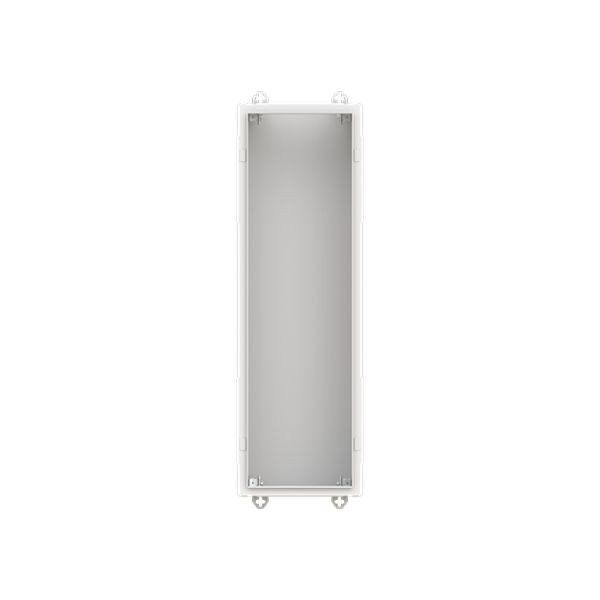 Wandschrank, Baureihe TwinLine, Leerschrank, Montageart: Aufputz, teilversenkt, für den Innenbereich, ohne Tür, Schutzklasse I (geerdet), Schutzart IP30, geltende Normen: DIN EN 61439-1, VDE 0660-600-1, DIN EN 61439-2, VDE 0660-600-2, DIN EN 61439-3, VDE 0660-600-3, IK-Code 08, pulverbeschichtet, in RAL 7035, Gehäuse aus Stahlblech, ohne Tür, Rückwand aus Stahlblech, Leitungseinführung oben über Flanschöffnung ausgeschnitten, unten über Flanschöffnung vorgeprägt, seitlich über Flanschöffnung vorgeprägt, Abmessungen in mm (H x B x T): 950 x 300 x 225, Rasteinheit 6 RE, Bauhöhe 2, Feldbreite 1, Platzeinheiten 72, vorbereitet für den Ausbau mit Zähler-, Verteilerfelder, Kombi-Sets, CombiLine-Module oder Montageplatten auf EDF-/WR-Montagegerüst