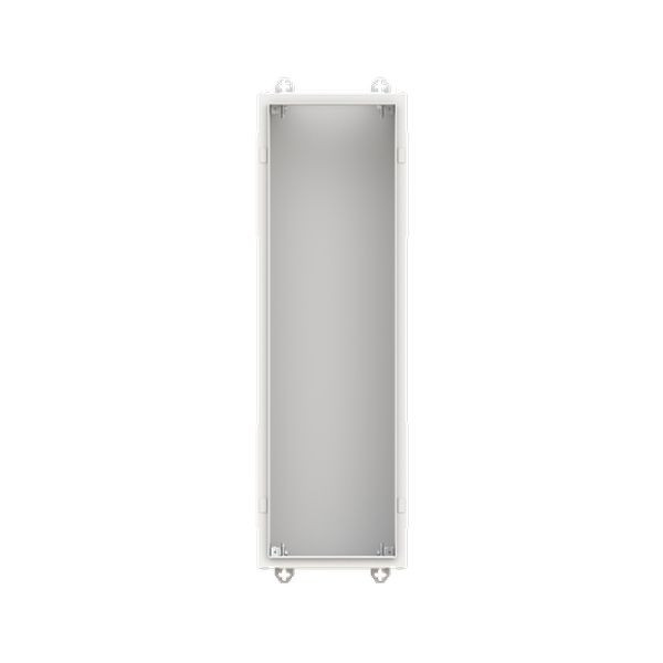 Wandschrank, Baureihe TwinLine, Leerschrank, Montageart: Aufputz, teilversenkt, für den Innenbereich, ohne Tür, Schutzklasse II (schutzisoliert), Schutzart IP30, geltende Normen: DIN EN 61439-1, VDE 0660-600-1, DIN EN 61439-2, VDE 0660-600-2, DIN EN 61439-3, VDE 0660-600-3, IK-Code 08, pulverbeschichtet, in RAL 7035, Gehäuse aus Stahlblech, ohne Tür, Rückwand aus Stahlblech, Leitungseinführung oben über Flanschöffnung ausgeschnitten, unten über Flanschöffnung vorgeprägt, seitlich über Flanschöffnung vorgeprägt, Abmessungen in mm (H x B x T): 950 x 300 x 225, Rasteinheit 6 RE, Bauhöhe 2, Feldbreite 1, Platzeinheiten 72, vorbereitet für den Ausbau mit Zähler-, Verteilerfelder, Kombi-Sets, CombiLine-Module auf EDF-/WR-Montagegerüst