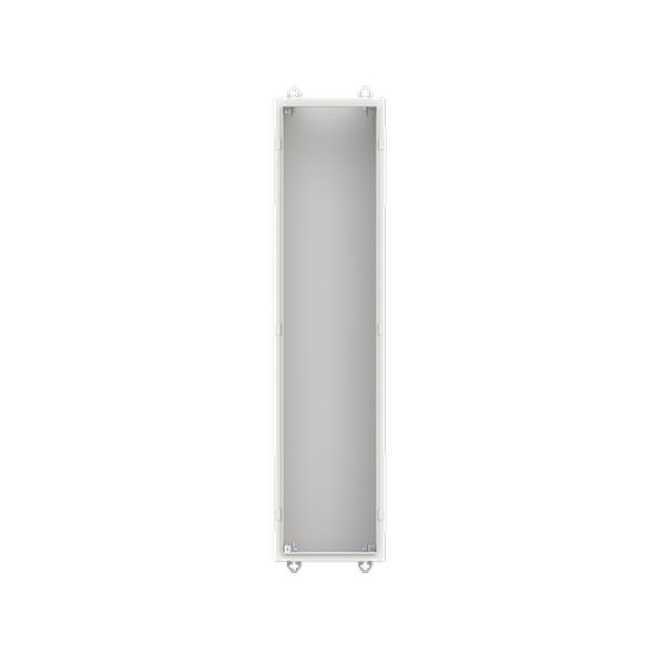 Wandschrank, Baureihe TwinLine, Leerschrank, Montageart: Aufputz, teilversenkt, für den Innenbereich, ohne Tür, Schutzklasse I (geerdet), Schutzart IP30, geltende Normen: DIN EN 61439-1, VDE 0660-600-1, DIN EN 61439-2, VDE 0660-600-2, DIN EN 61439-3, VDE 0660-600-3, IK-Code 08, pulverbeschichtet, in RAL 7035, Gehäuse aus Stahlblech, ohne Tür, Rückwand aus Stahlblech, Leitungseinführung oben über Flanschöffnung ausgeschnitten, unten über Flanschöffnung vorgeprägt, seitlich über Flanschöffnung vorgeprägt, Abmessungen in mm (H x B x T): 1250 x 300 x 225, Rasteinheit 8 RE, Bauhöhe 4, Feldbreite 1, Platzeinheiten 96, vorbereitet für den Ausbau mit Zähler-, Verteilerfelder, Kombi-Sets, CombiLine-Module oder Montageplatten auf EDF-/WR-Montagegerüst