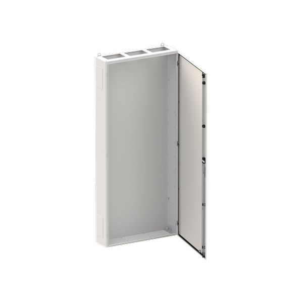 Standschrank, Baureihe TwinLine, Leerschrank, Montageart: Aufputz, teilversenkt, für den Innenbereich, mit Tür, Schutzklasse I (geerdet), Schutzart IP55, geltende Normen: DIN EN 61439-1, VDE 0660-600-1, DIN EN 61439-2, VDE 0660-600-2, DIN EN 61439-3, VDE 0660-600-3, IK-Code 08, pulverbeschichtet, in RAL 7035, Gehäuse aus Stahlblech, einflüglige Tür, Tür aus Stahlblech, mit Standardverschluss Doppelbart 3 mm, Türöffnungswinkel 180 Grad, Türanschlag rechts oder links, Rückwand aus Stahlblech, Leitungseinführung oben über Flanschöffnung ausgeschnitten, unten über Flanschöffnung vorgeprägt, seitlich über Flanschöffnung vorgeprägt, Abmessungen in mm (H x B x T): 1850 x 800 x 225, Rasteinheit 12 RE, Bauhöhe 8, Feldbreite 3, Platzeinheiten 432, vorbereitet für den Ausbau mit Zähler-, Verteilerfelder, Kombi-Sets, CombiLine-Module oder Montageplatten auf EDF-/WR-Montagegerüst