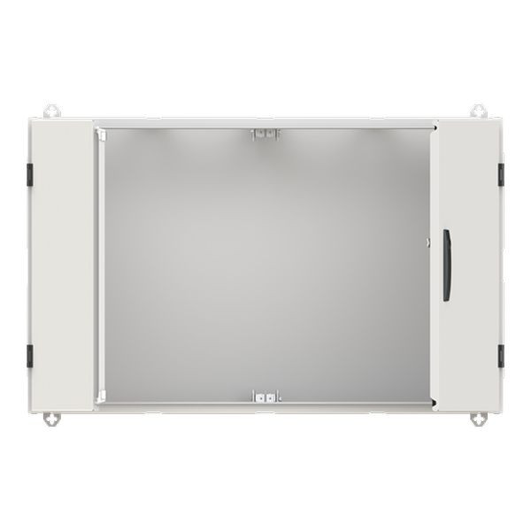 Wandschrank, Baureihe TwinLine, Leerschrank, Montageart: Aufputz, teilversenkt, für den Innenbereich, mit Tür, Schutzklasse I (geerdet), Schutzart IP55, geltende Normen: DIN EN 61439-1, VDE 0660-600-1, DIN EN 61439-2, VDE 0660-600-2, DIN EN 61439-3, VDE 0660-600-3, IK-Code 08, pulverbeschichtet, in RAL 7035, Gehäuse aus Stahlblech, Doppeltür, Tür aus Stahlblech, mit Standardverschluss Doppelbart 3 mm, Türöffnungswinkel 180 Grad, Türanschlag rechts und links, Rückwand aus Stahlblech, Leitungseinführung oben über Flanschöffnung ausgeschnitten, unten über Flanschöffnung vorgeprägt, seitlich über Flanschöffnung vorgeprägt, Abmessungen in mm (H x B x T): 650 x 1050 x 225, Rasteinheit 4 RE, Bauhöhe 0, Feldbreite 4, Platzeinheiten 192, vorbereitet für den Ausbau mit Zähler-, Verteilerfelder, Kombi-Sets, CombiLine-Module oder Montageplatten auf EDF-/WR-Montagegerüst