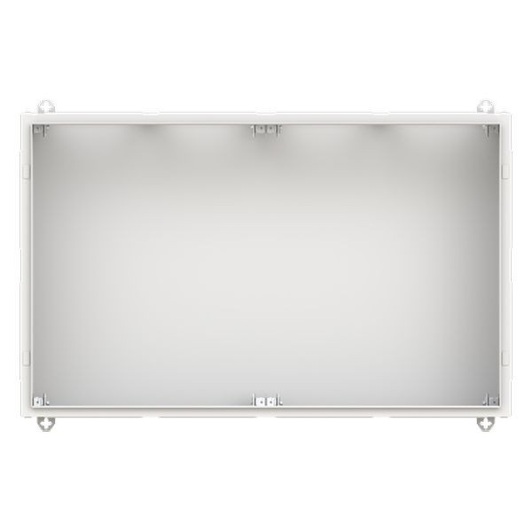 Wandschrank, Baureihe TwinLine, Leerschrank, Montageart: Aufputz, teilversenkt, für den Innenbereich, ohne Tür, Schutzklasse II (schutzisoliert), Schutzart IP30, geltende Normen: DIN EN 61439-1, VDE 0660-600-1, DIN EN 61439-2, VDE 0660-600-2, DIN EN 61439-3, VDE 0660-600-3, IK-Code 08, pulverbeschichtet, in RAL 7035, Gehäuse aus Stahlblech, ohne Tür, Rückwand aus Stahlblech, Leitungseinführung oben über Flanschöffnung ausgeschnitten, unten über Flanschöffnung vorgeprägt, seitlich über Flanschöffnung vorgeprägt, Abmessungen in mm (H x B x T): 650 x 1050 x 225, Rasteinheit 4 RE, Bauhöhe 0, Feldbreite 4, Platzeinheiten 192, vorbereitet für den Ausbau mit Zähler-, Verteilerfelder, Kombi-Sets, CombiLine-Module auf EDF-/WR-Montagegerüst