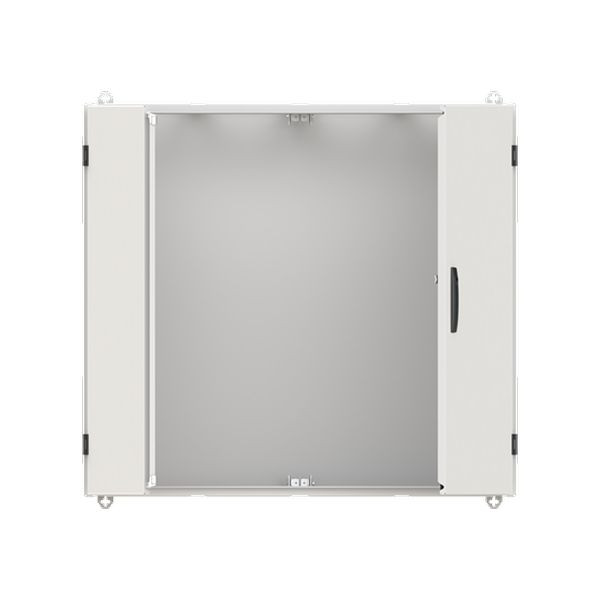 Wandschrank, Baureihe TwinLine, Leerschrank, Montageart: Aufputz, teilversenkt, für den Innenbereich, mit Tür, Schutzklasse II (schutzisoliert), Schutzart IP55, geltende Normen: DIN EN 61439-1, VDE 0660-600-1, DIN EN 61439-2, VDE 0660-600-2, DIN EN 61439-3, VDE 0660-600-3, IK-Code 08, pulverbeschichtet, in RAL 7035, Gehäuse aus Stahlblech, Doppeltür, Tür aus Stahlblech, mit Standardverschluss Doppelbart 3 mm, Türöffnungswinkel 180 Grad, Türanschlag rechts und links, Rückwand aus Stahlblech, Leitungseinführung oben über Flanschöffnung ausgeschnitten, unten über Flanschöffnung vorgeprägt, seitlich über Flanschöffnung vorgeprägt, Abmessungen in mm (H x B x T): 950 x 1050 x 225, Rasteinheit 6 RE, Bauhöhe 2, Feldbreite 4, Platzeinheiten 288, vorbereitet für den Ausbau mit Zähler-, Verteilerfelder, Kombi-Sets, CombiLine-Module auf EDF-/WR-Montagegerüst