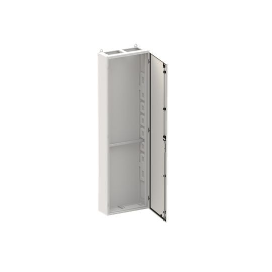 Standschrank, Baureihe TwinLine, Leerschrank, Montageart: Aufputz, teilversenkt, für den Innenbereich, mit Tür, Schutzklasse II (schutzisoliert), Schutzart IP44, geltende Normen: DIN EN 61439-1, VDE 0660-600-1, IK-Code 08, pulverbeschichtet, in RAL 7035, Gehäuse aus Stahlblech, einflüglige Tür, Tür aus Stahlblech, mit Standardverschluss Doppelbart 3 mm, Türöffnungswinkel 180 Grad, Türanschlag rechts oder links, Rückwand aus Stahlblech, Leitungseinführung oben über Flanschöffnung ausgeschnitten, unten über Flanschöffnung vorgeprägt, Abmessungen in mm (H x B x T): 1850 x 550 x 225, Rasteinheit 12 RE, Bauhöhe 8, Feldbreite 2, Platzeinheiten 288, vorbereitet zum Einbau von Verteilerfeldern und CombiLine Modulsystemfeldern