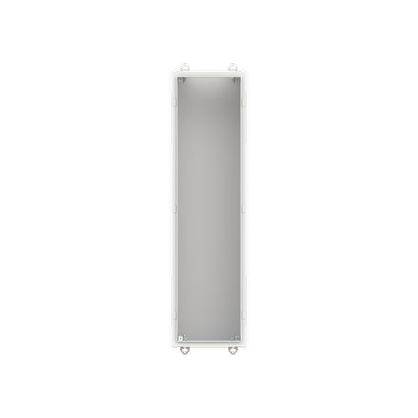 Wandschrank, Baureihe TwinLine, Leerschrank, Montageart: Aufputz, teilversenkt, für den Innenbereich, ohne Tür, Schutzklasse I (geerdet), Schutzart IP30, geltende Normen: DIN EN 61439-1, VDE 0660-600-1, DIN EN 61439-2, VDE 0660-600-2, DIN EN 61439-3, VDE 0660-600-3, IK-Code 08, pulverbeschichtet, in RAL 7035, Gehäuse aus Stahlblech, ohne Tür, Rückwand aus Stahlblech, Leitungseinführung oben über Flanschöffnung ausgeschnitten, unten über Flanschöffnung vorgeprägt, seitlich über Flanschöffnung vorgeprägt, Abmessungen in mm (H x B x T): 1100 x 300 x 275, Rasteinheit 7 RE, Bauhöhe 3, Feldbreite 1, Platzeinheiten 84, vorbereitet für den Ausbau mit Zähler-, Verteilerfelder, Kombi-Sets, CombiLine-Module oder Montageplatten auf EDF-/WR-Montagegerüst